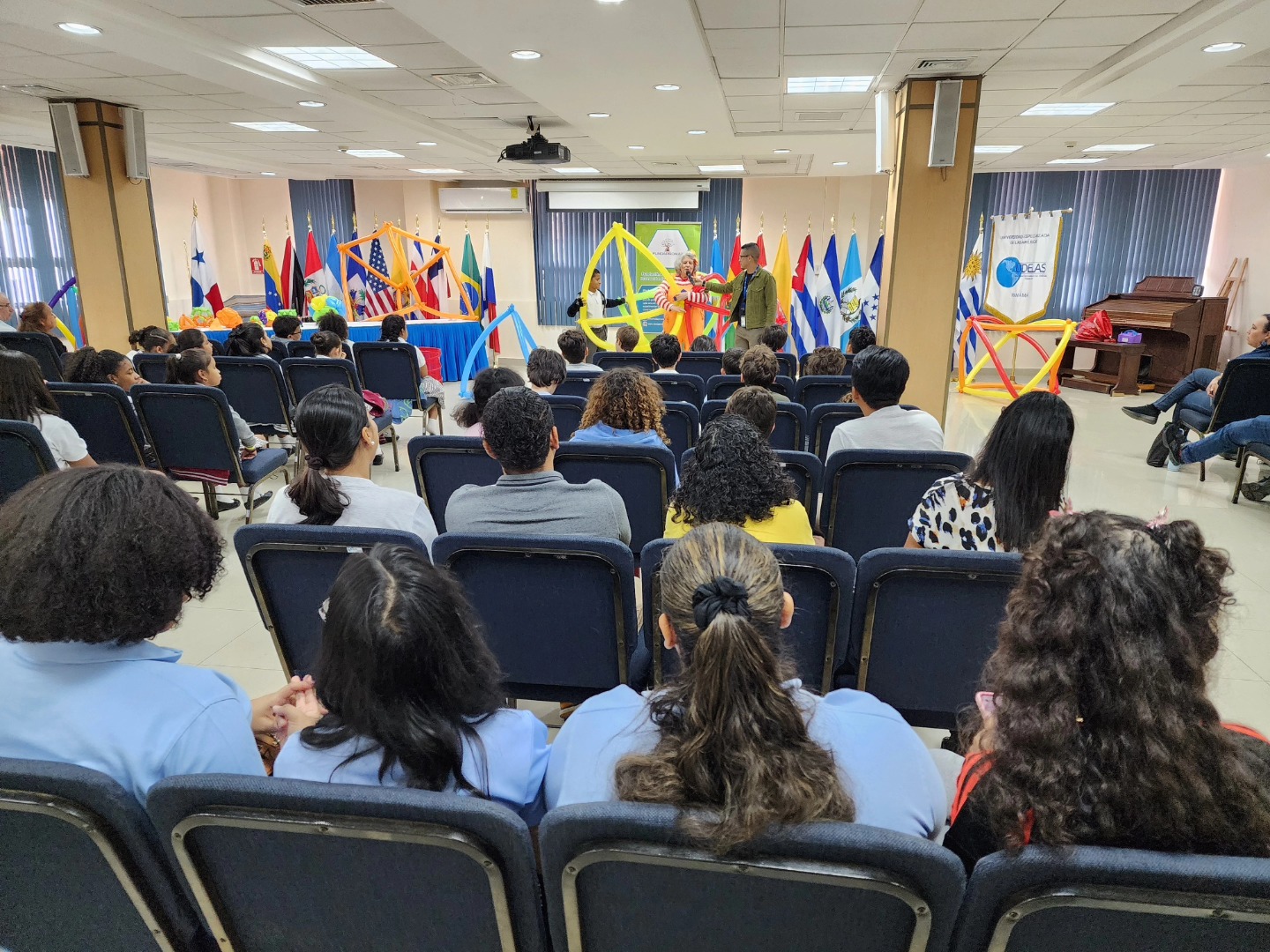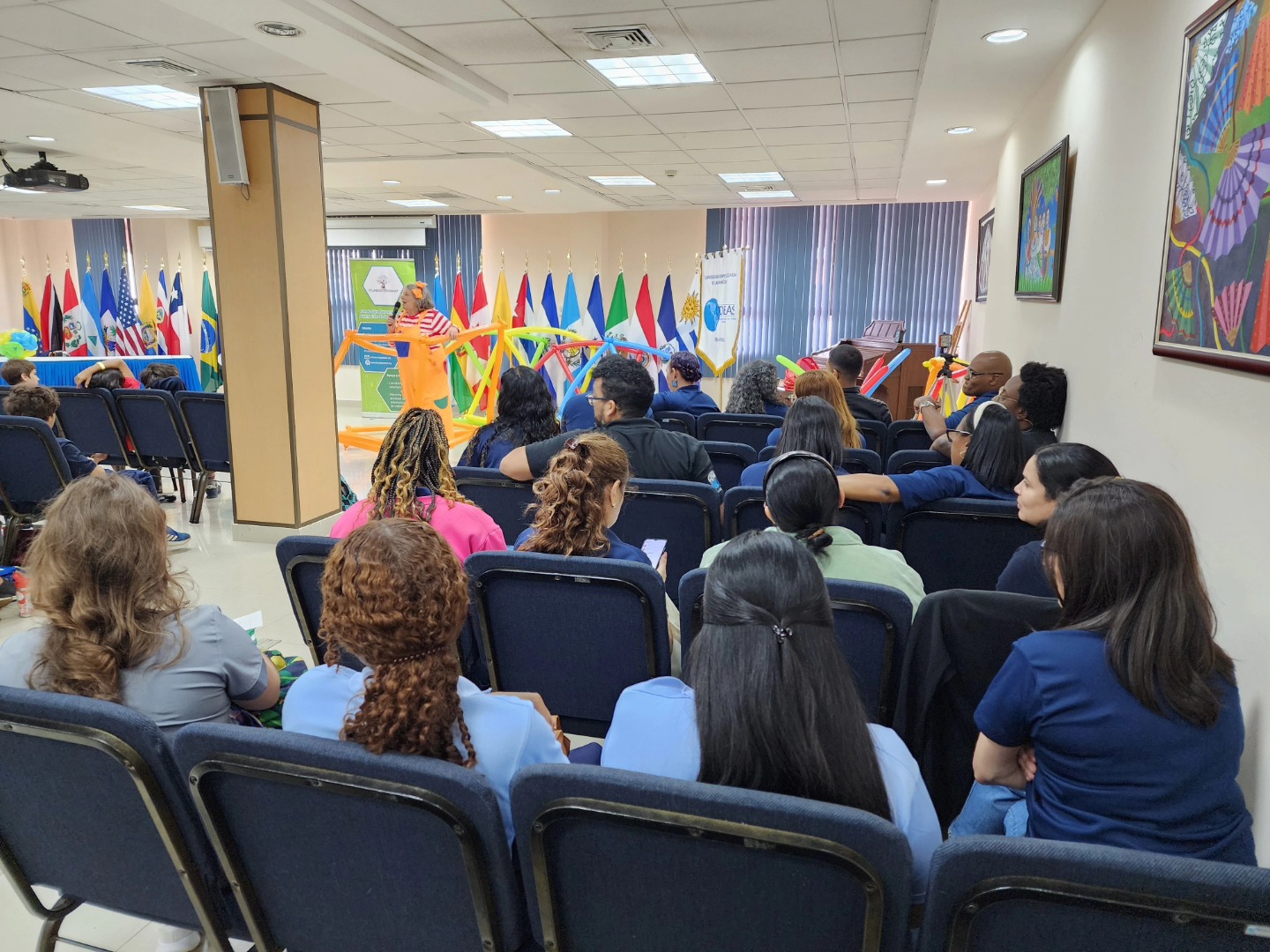 On Friday, May 16th, 2025 the keynote speech “Games, Balloons and Math” from 11 am until 12 pm took place at the Auditorium of Building 807 at the Specialized University of the Americas (UDELAS), Panama City. This free in-person event for the entire family was given by our international speaker Caroline Ainslie from United Kingdom, as part of the celebration of the International Day for Women in Mathematics.