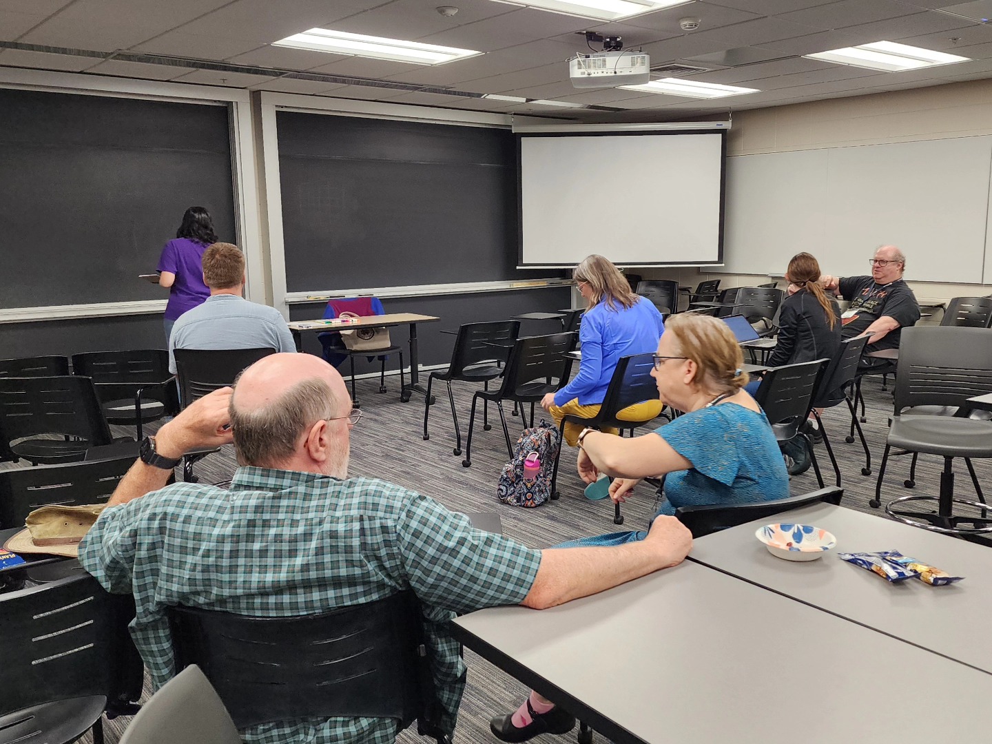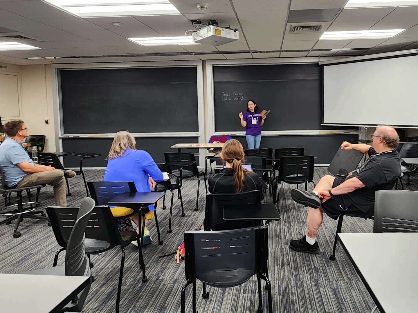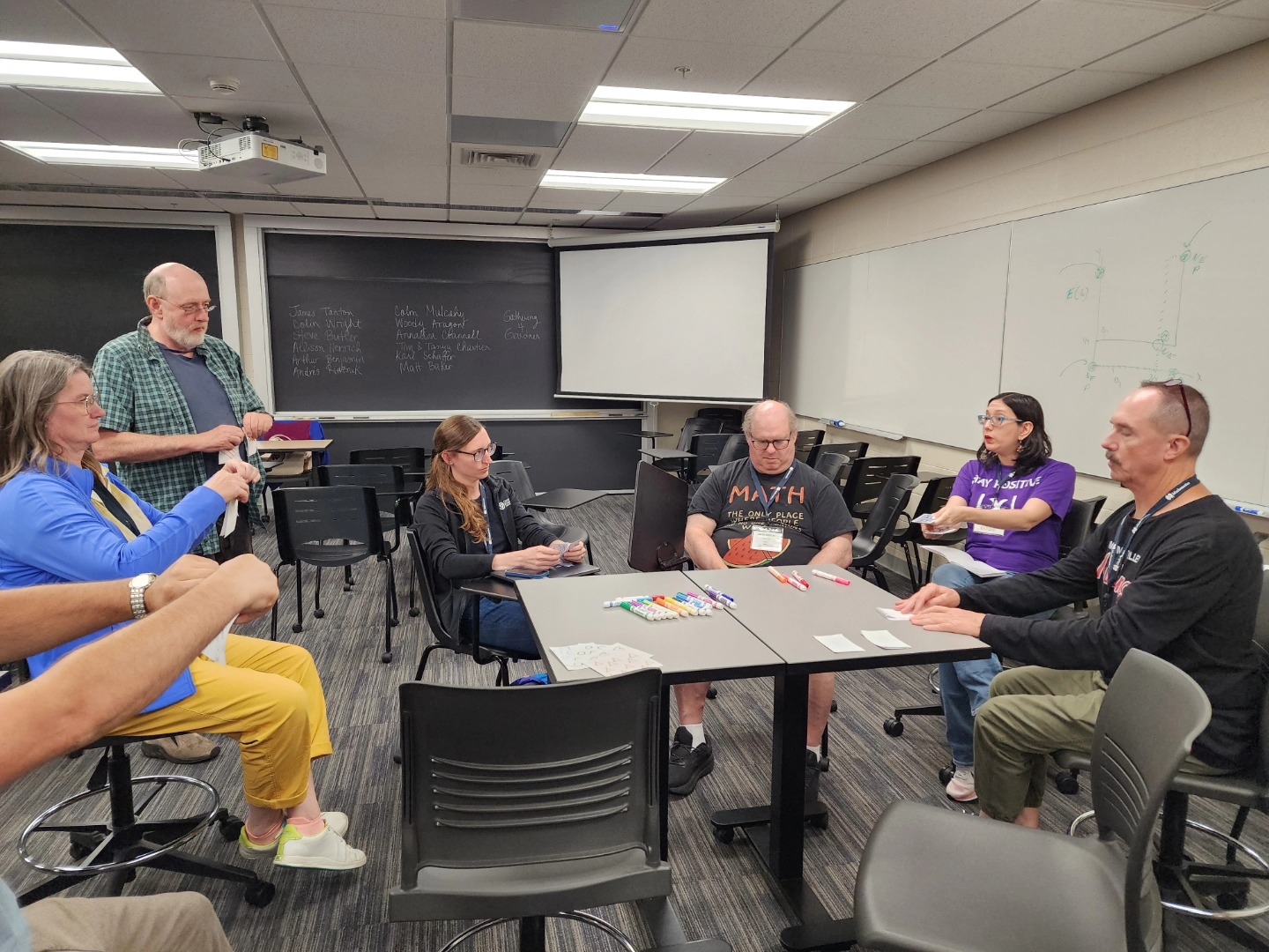 On Thursday, July 17th, 2025 we ran an in-person session on Magic and Math at the Math Circle Institute in Room 129 of the Hayes-Healy Center at the University of Notre Dame in Indiana, United States. We thank Amanda Serenevy from the Riverbend Community Math Center for the invitation to share with the participants of the Math Circle Institute.
