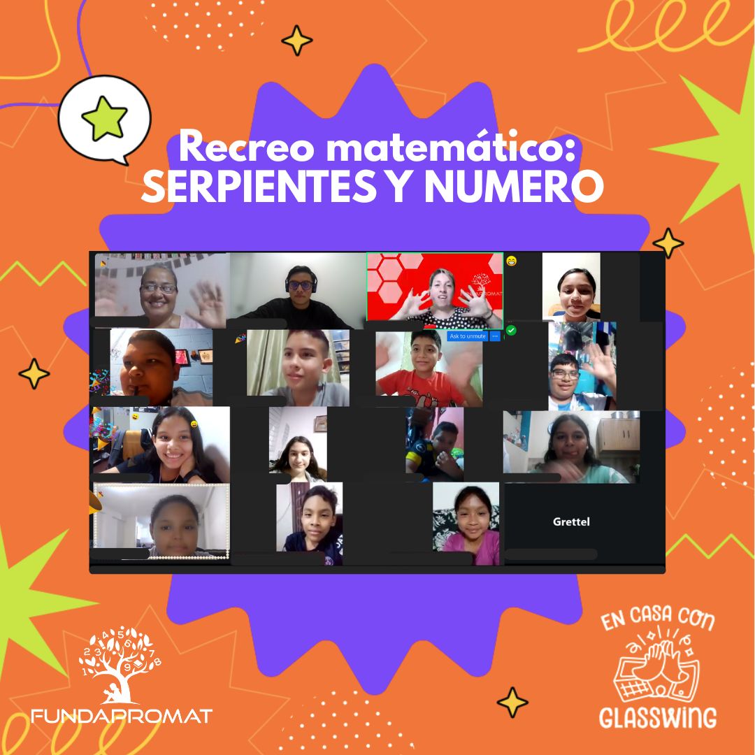 On Thursday, September 18th, 2025 we were invited by En Casa con Glasswing to run a Math Playtime aimed at 10 to 13 year-old kids. In this virtual event, the participants from all Central America explored the fun activity “Number Snakes” (in Spanish) with our volunteers Romina Busain from Argentina and Marleny Vargas from Panama.