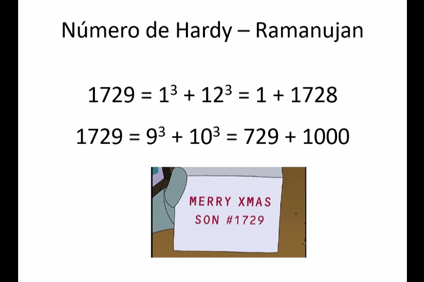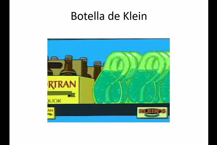 El expositor explicó que Futurama es una serie de televisión de animación creada por Matt Groening, creador de la popular serie humorística Los Simpson. Claudio Sánchez describió que la trama de la serie gira en torno a las actividades y aventuras de los empleados de la empresa Planet Express, dedicada al reparto de mensajería interplanetaria. El expositor mostró algunos ejemplos concretos de matemáticas en la serie como la botella de Klein, la banda de Moebius, Flatland, el número de Hardy-Ramanujan, los números binarios y muchos más.