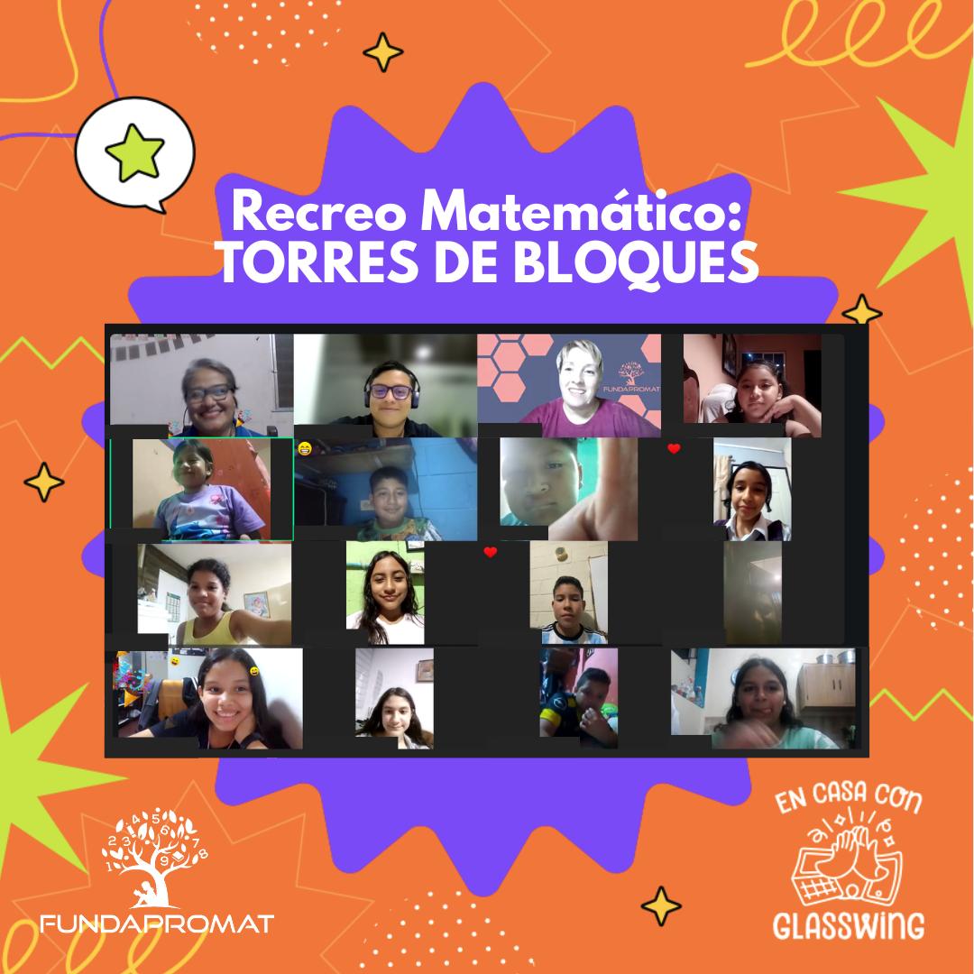 On Thursday, October 30th, 2025 we were invited by En Casa con Glasswing to run a Math Playtime aimed at 10 to 13 year-old kids. In this virtual event, the participants from all Central America explored the fun activity “Block Stackers” (in Spanish) with our volunteers Romina Busain from Argentina and Marleny Vargas from Panama.
