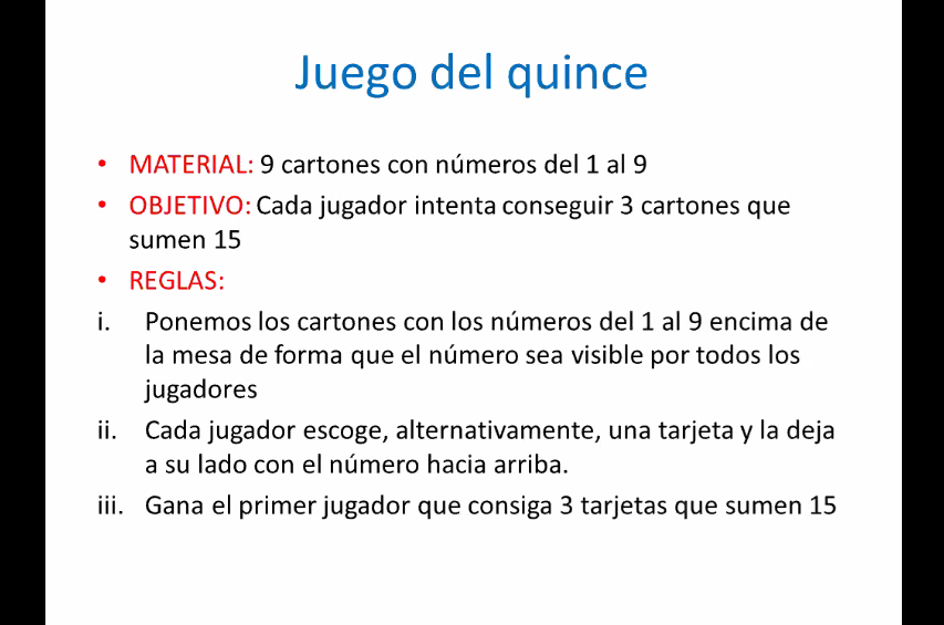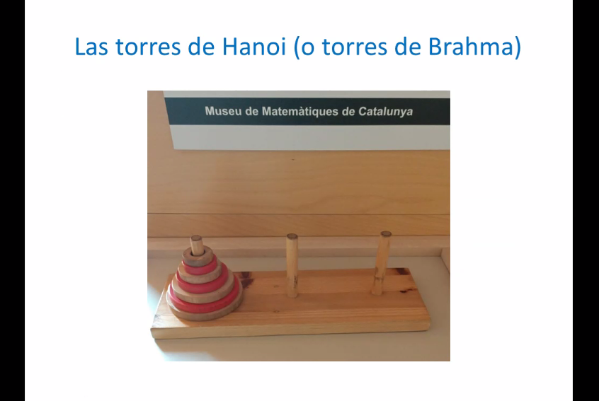 The speaker started the virtual event by explaining what games and mathematics have in common and how games contribute to the learning of this science. Yolanda Segarra Wecker then described the Game of Fifteen, the Tower of Hanoi and the Game of NIM. The speaker also analyzed the winning strategy of each of these games and generalized the results. This virtual event was co-organized by the Museum of Mathematics of Cataluña (MMACA) in Spain.