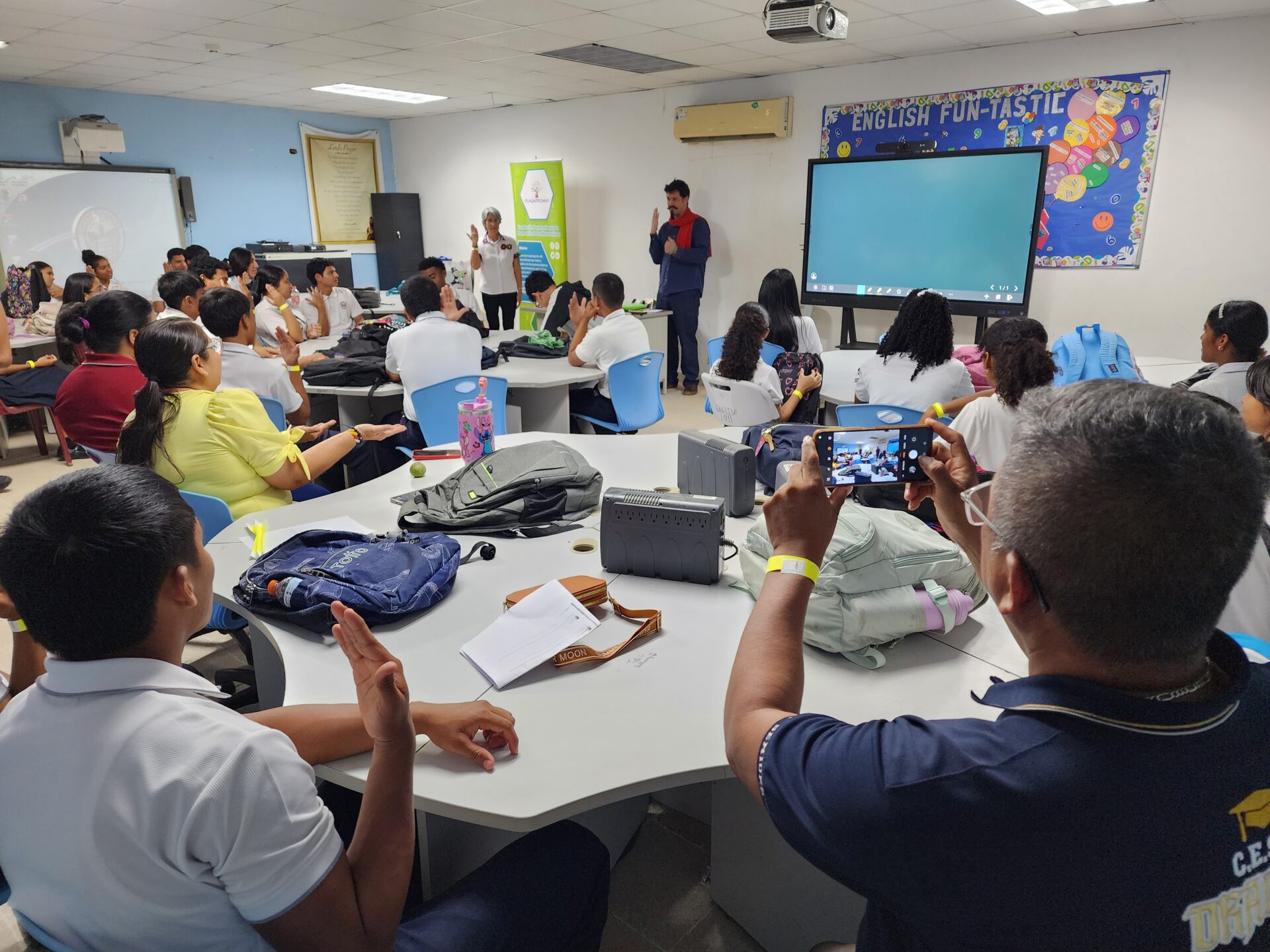 On Thursday, November 27th, 2025 we ran a math & magic workshop for a group of students of the San Carlos Educational Center in the Province of West Panama. This in-person workshop was given by the Portuguese mathemagician Tiago Hirth.